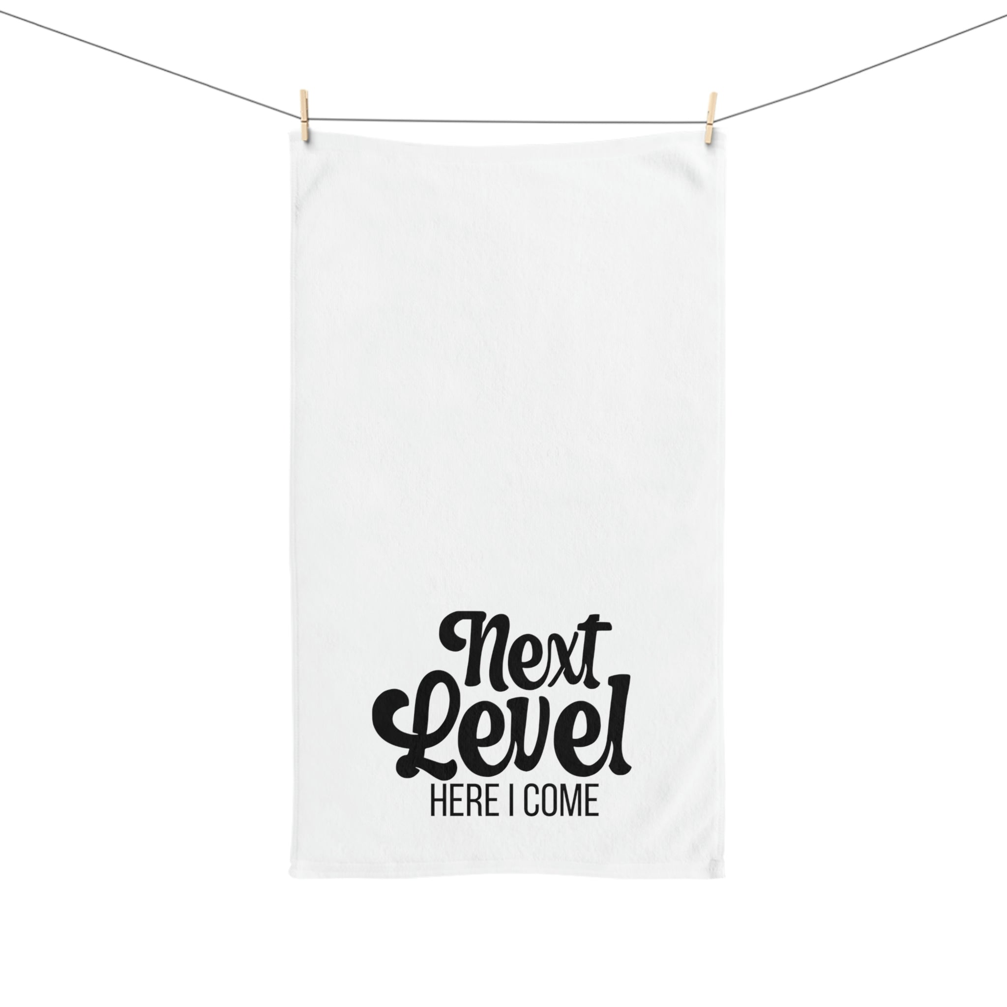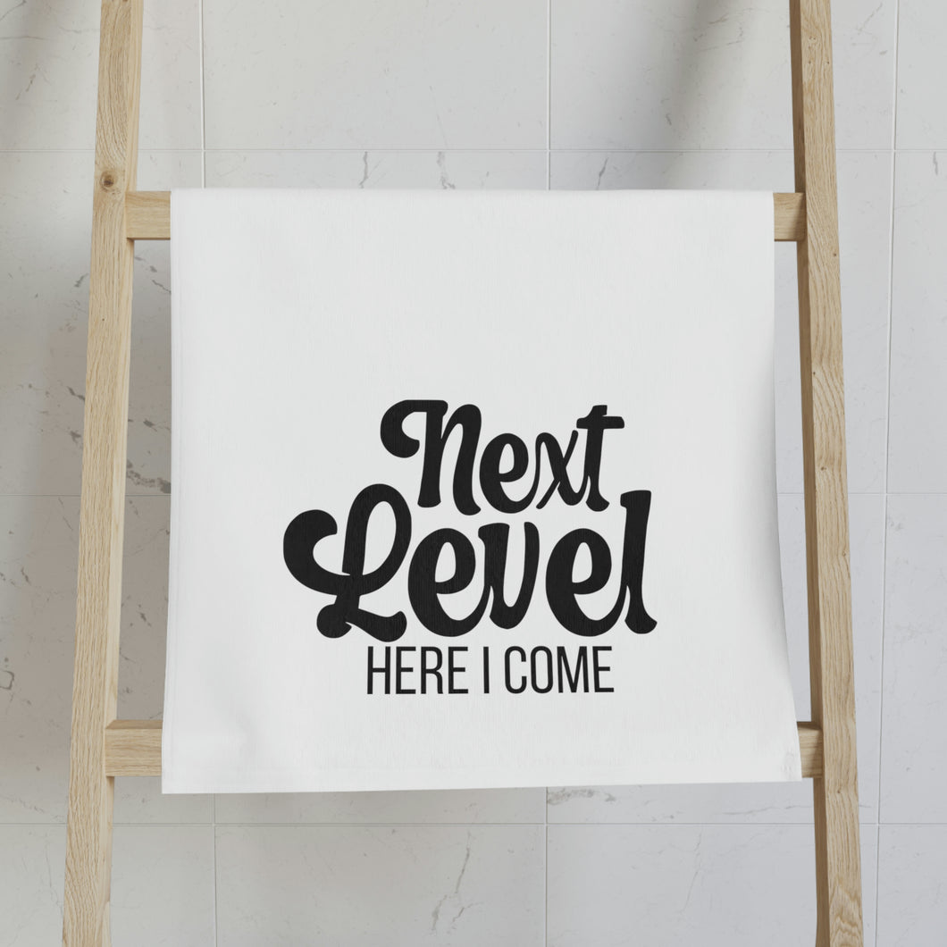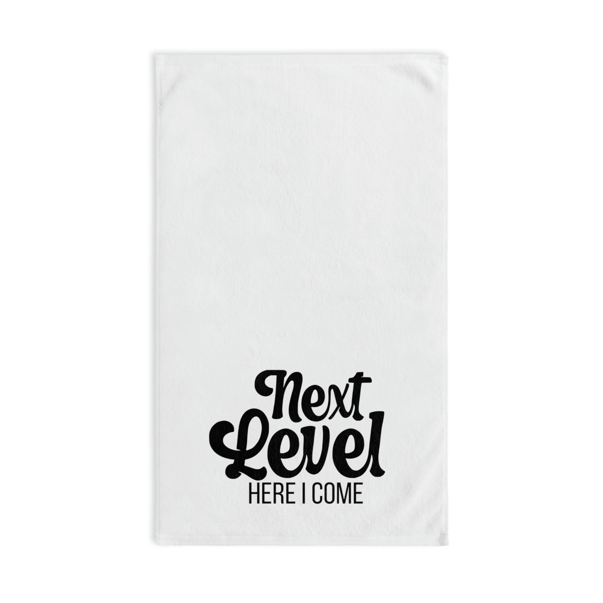 The "Next Level Here I Come" hand towel makes for an easy way to add some extra personality to your home.