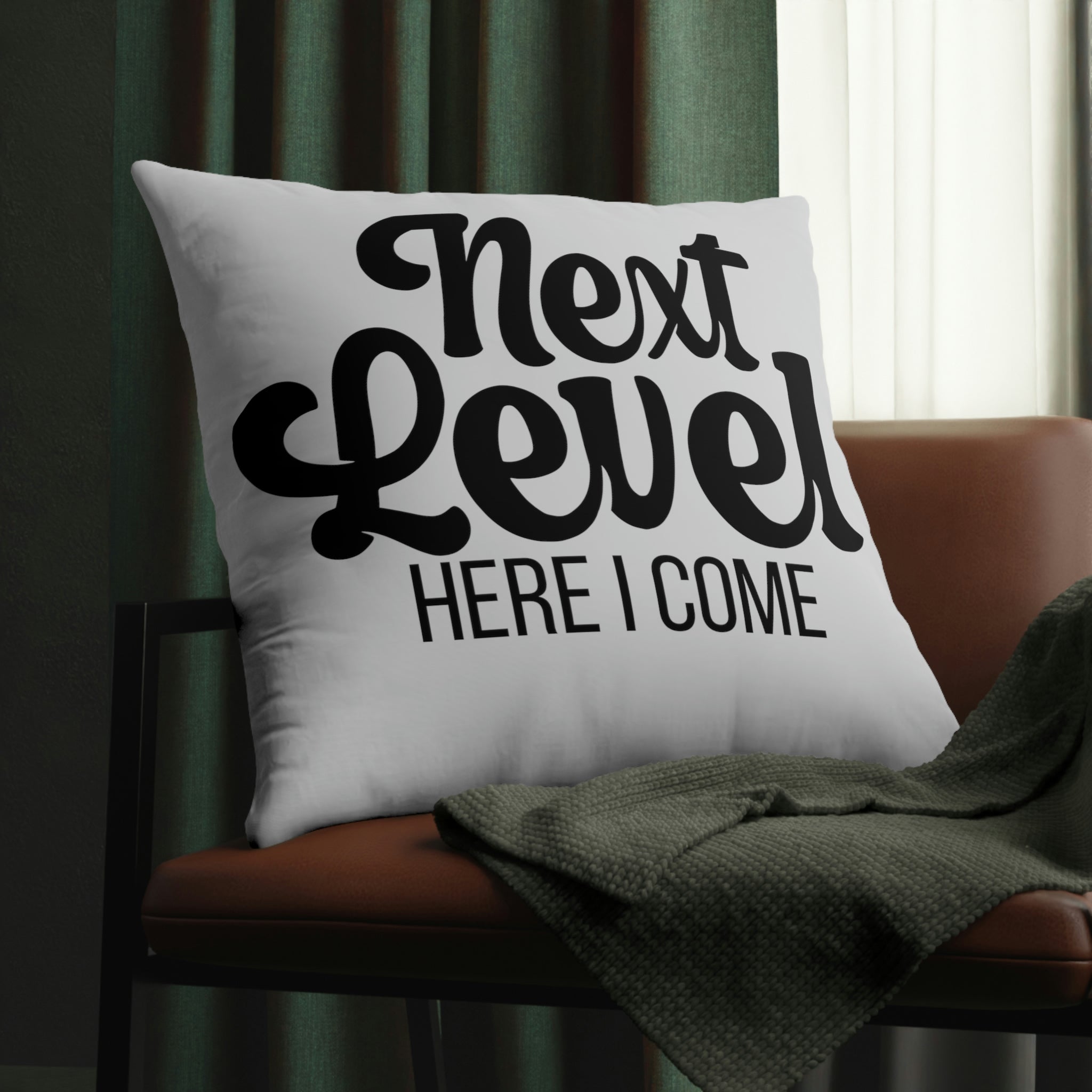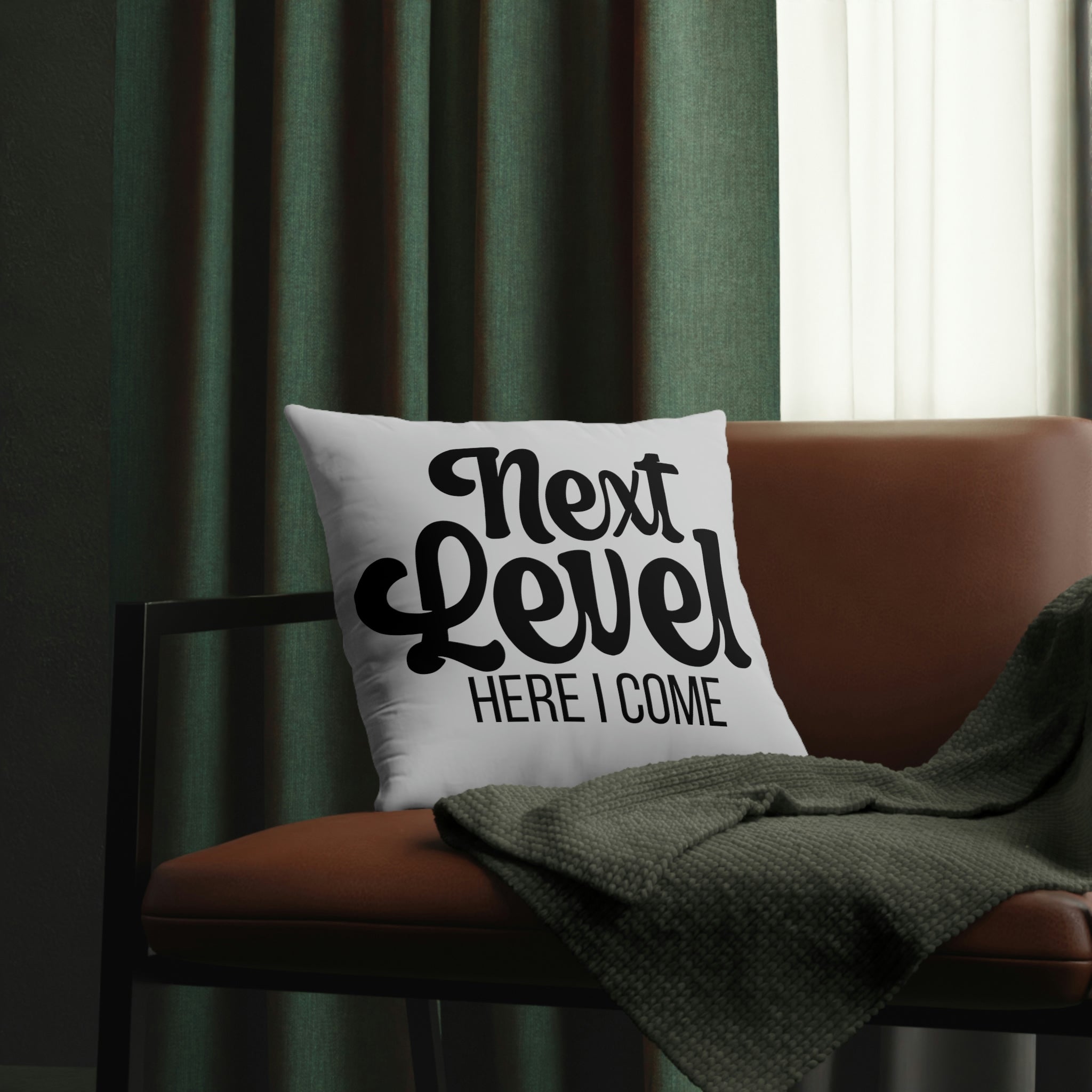 Add a touch of personality to any room with one of our "Next Level Here I Come" Decor Pillows.