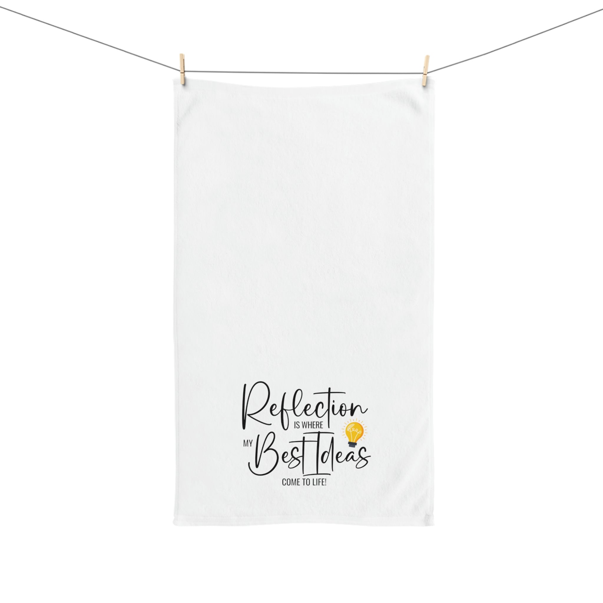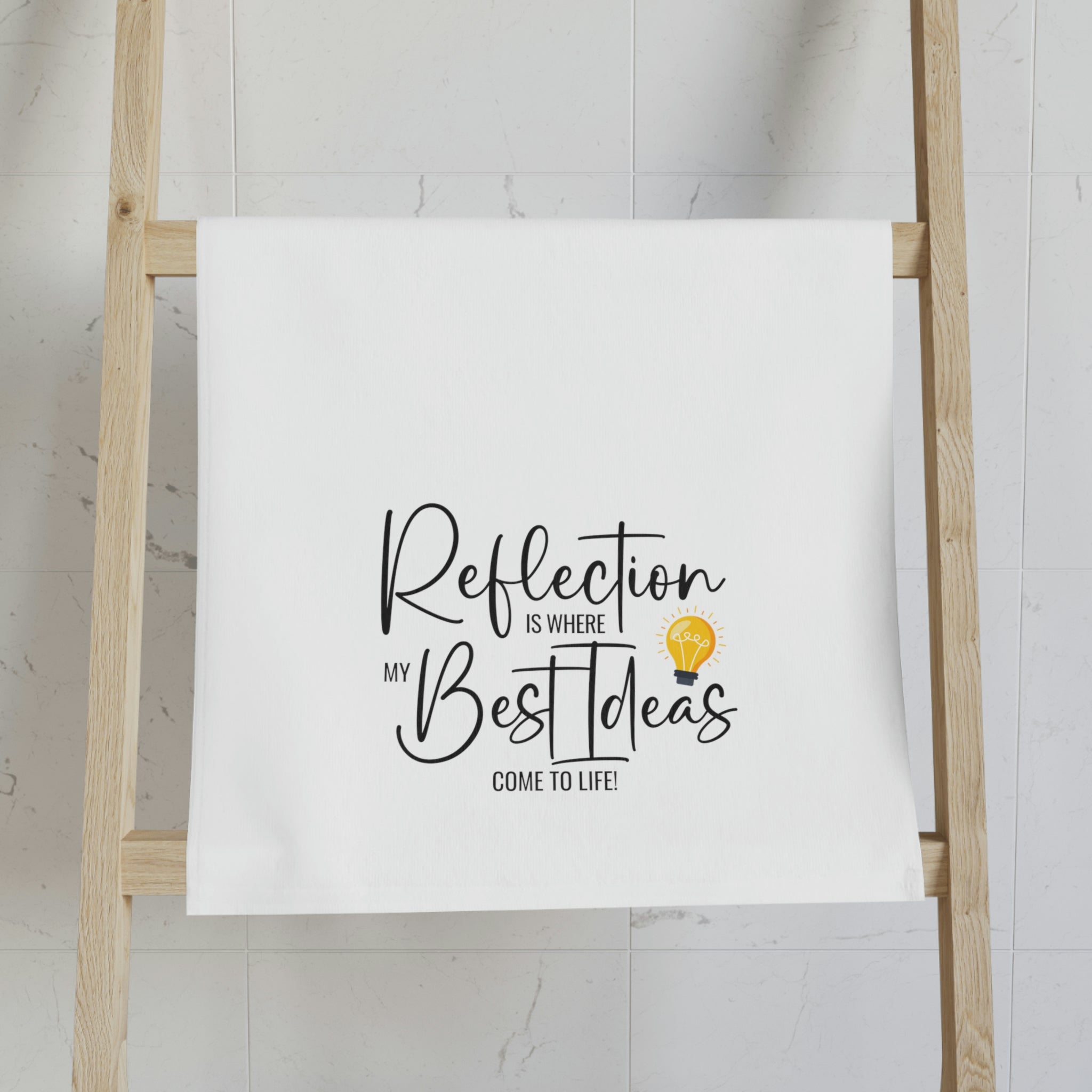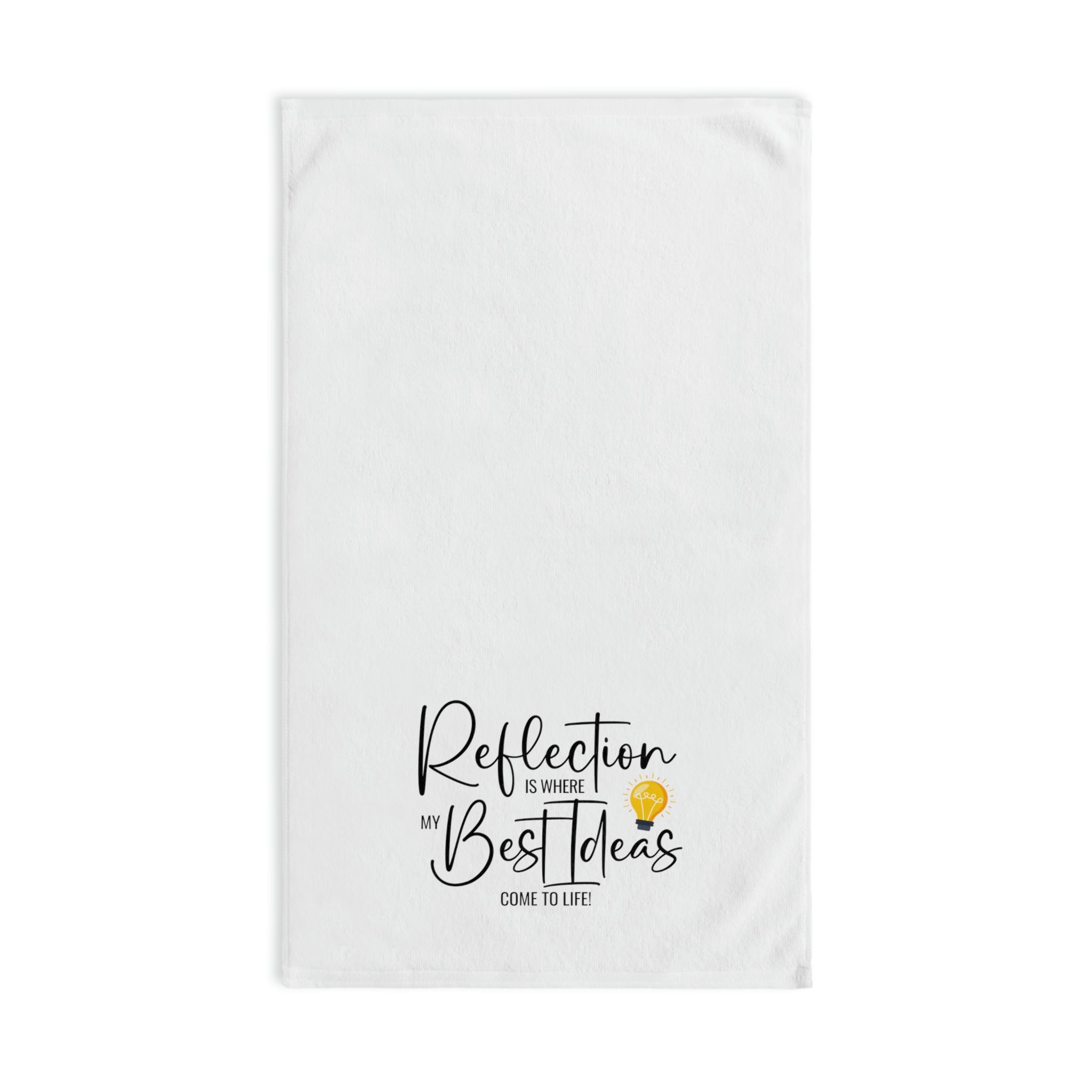 The "Reflection Is Where My Best Ideas Come To Life" hand towel makes for an easy way to add some extra personality to your home.