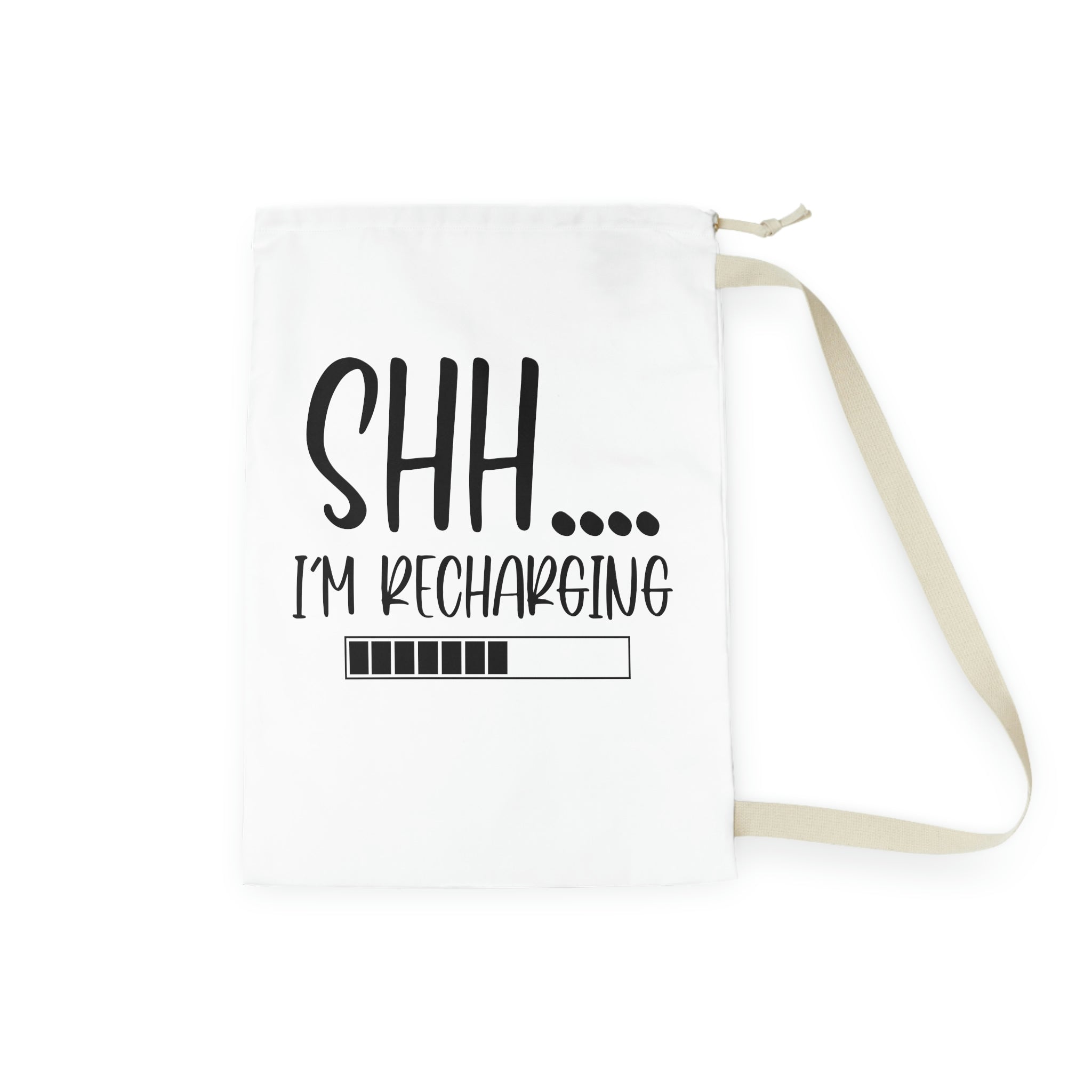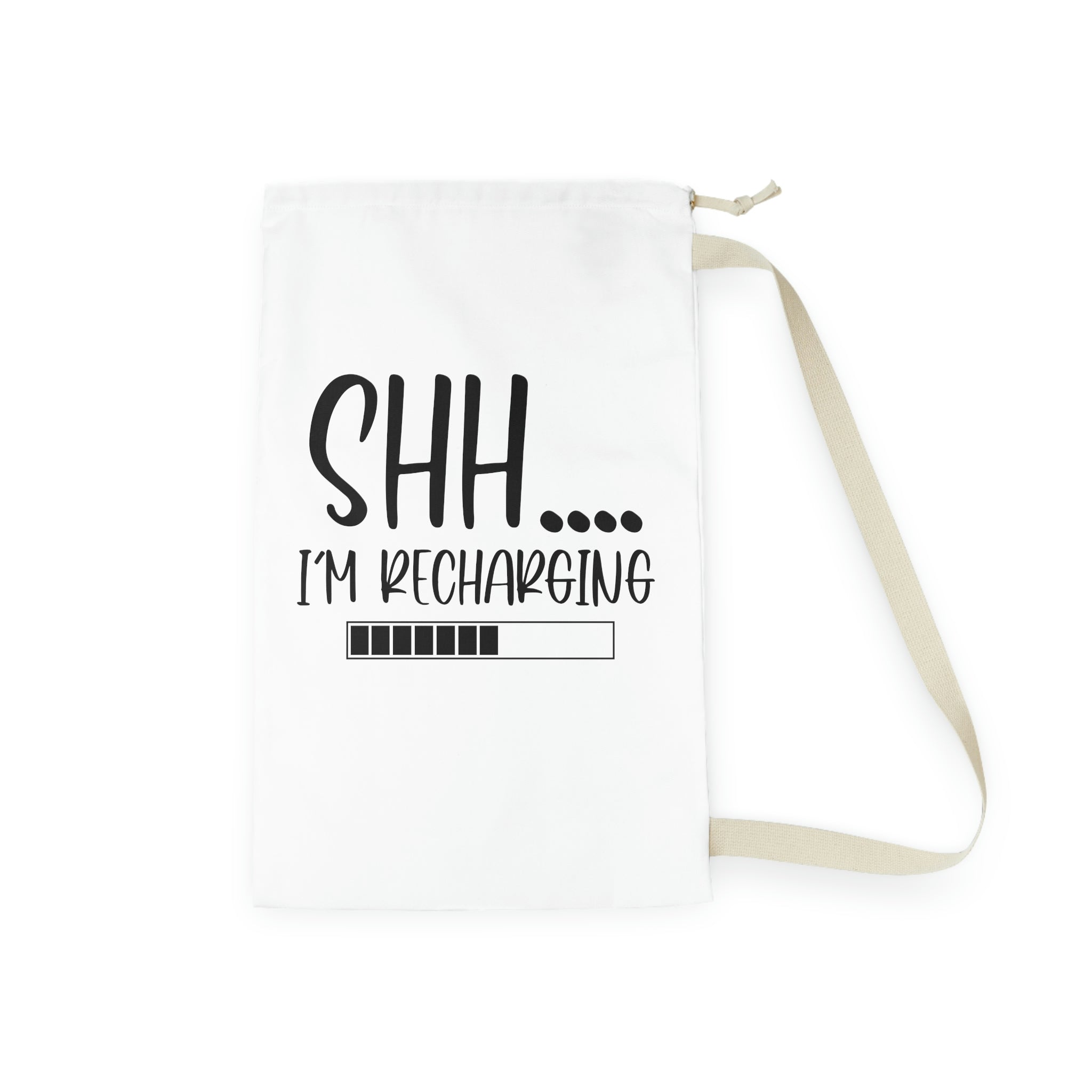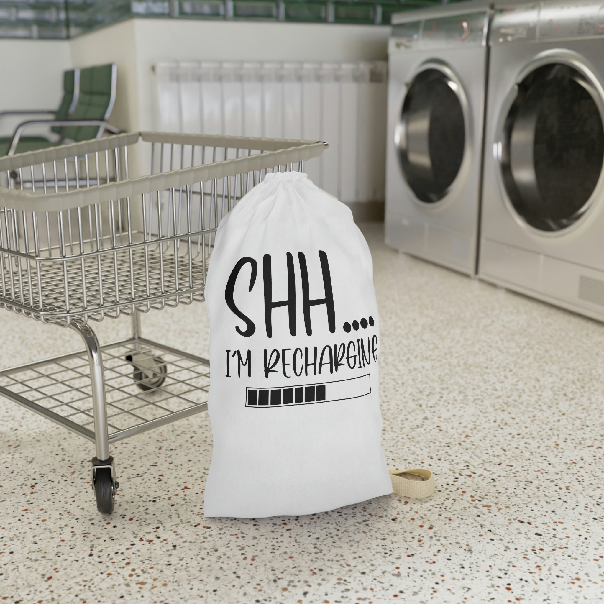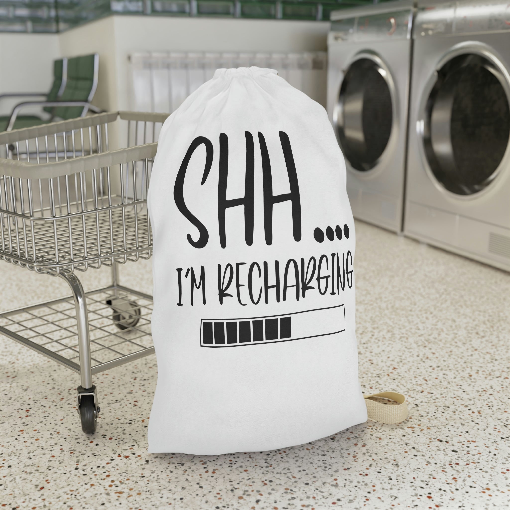 The "Shh I'm Recharging" laundry bag perfectly adds personality and style to a mundane task.